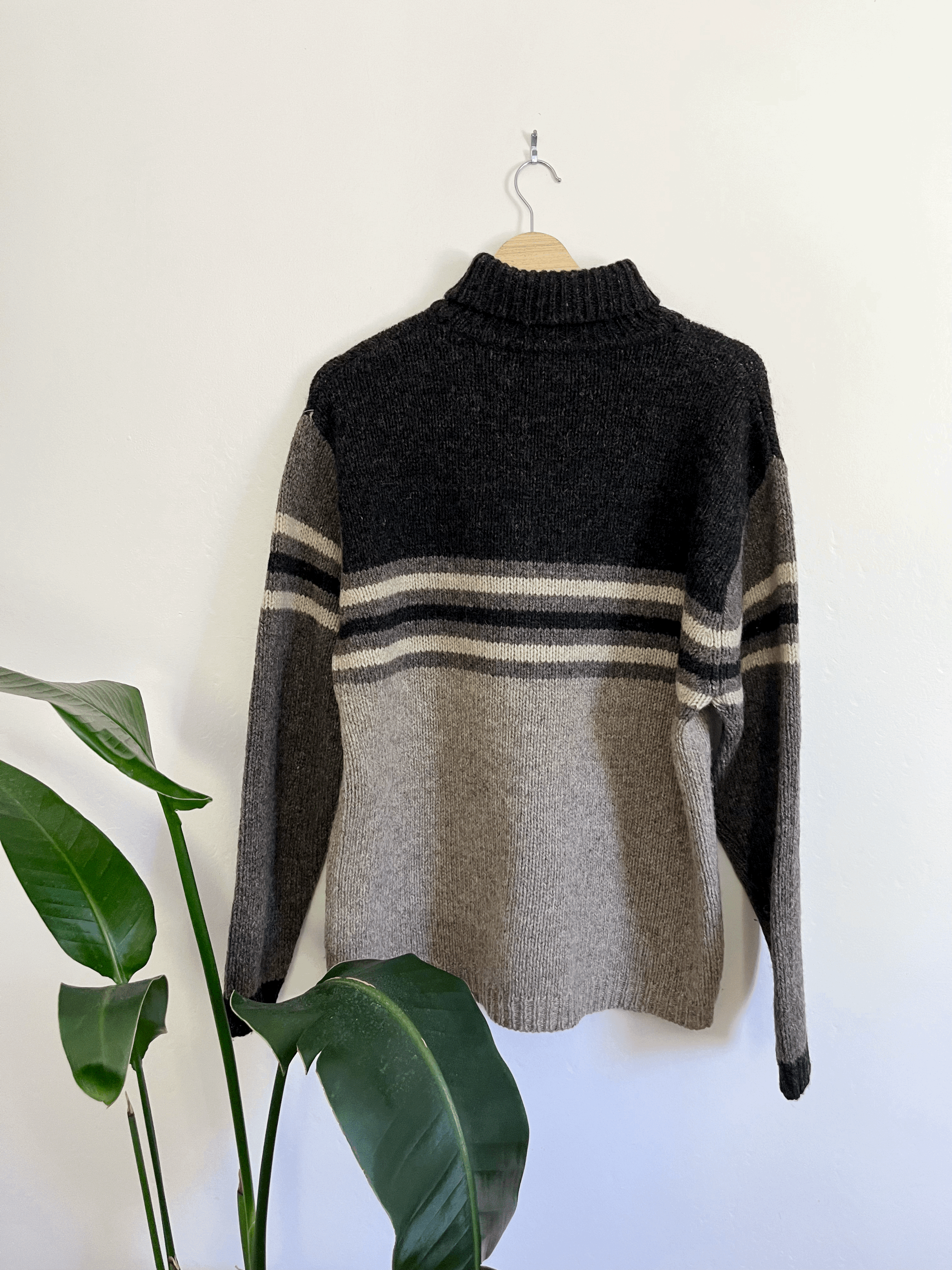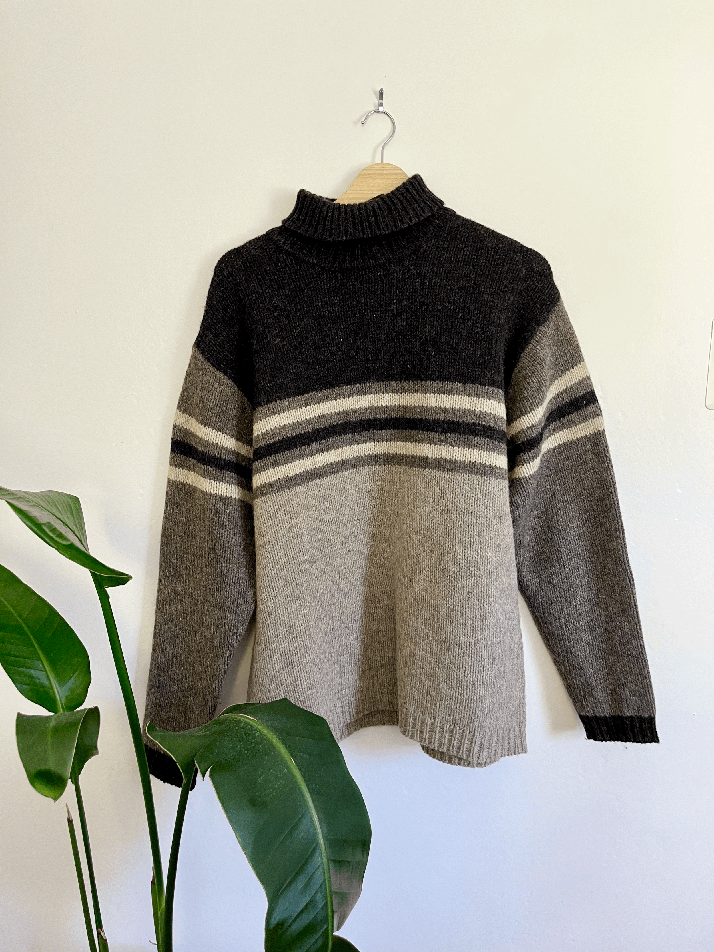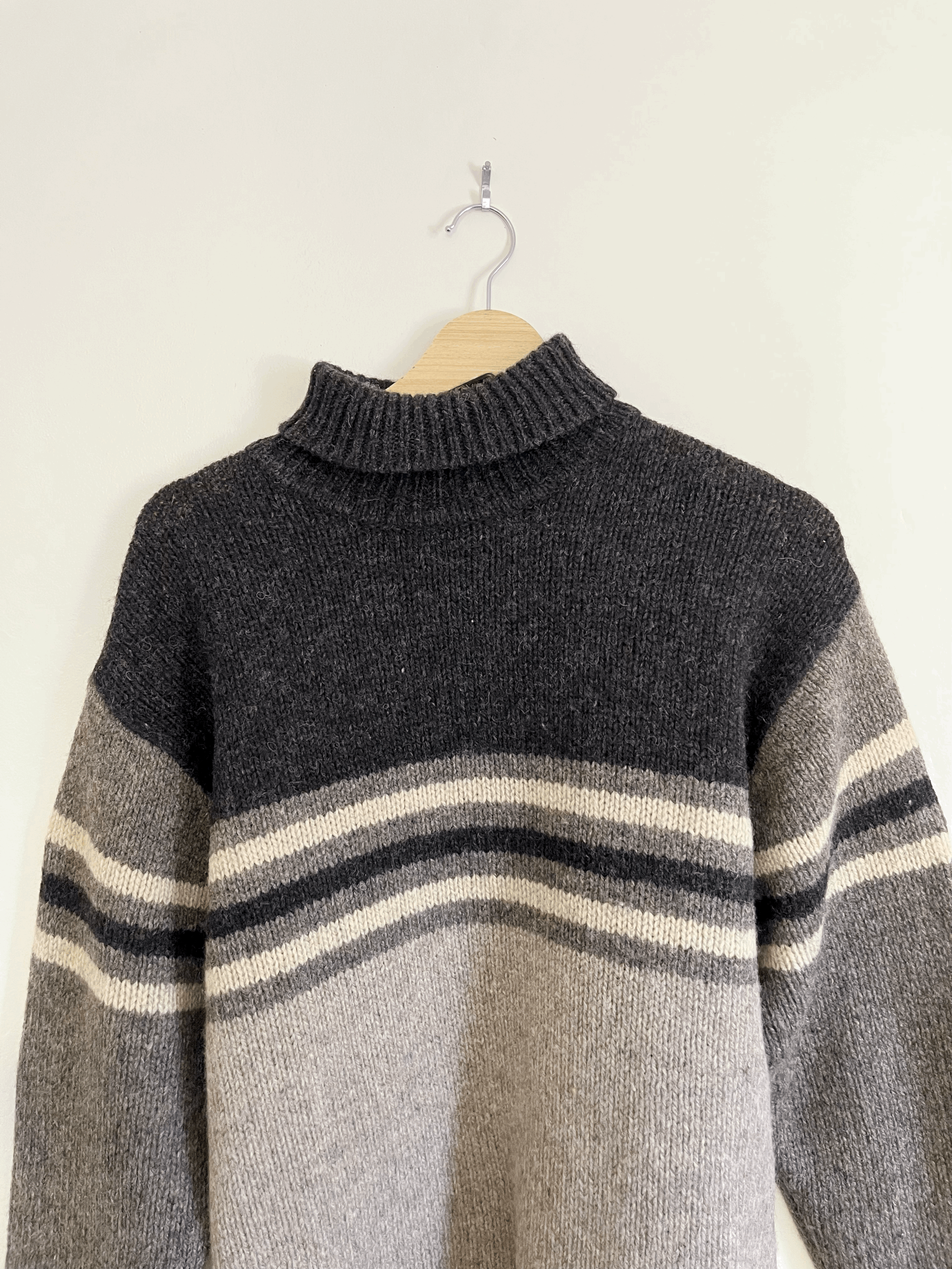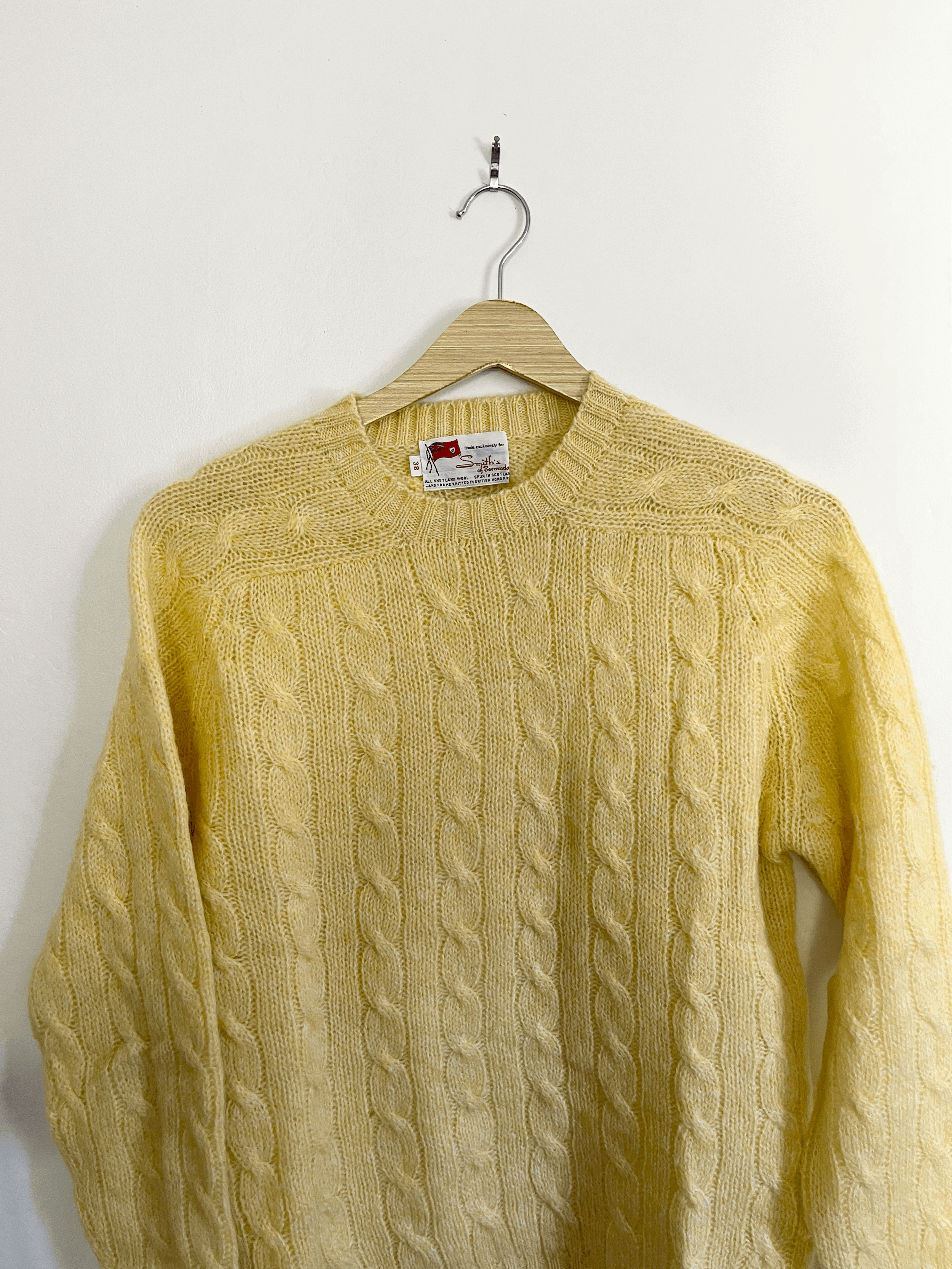 Vintage cream cable knit chunky wool sweater with a V-neck. Made from 100% wool by J. Crew. Features holes throughout, stains and browning, and a scratchy texture.