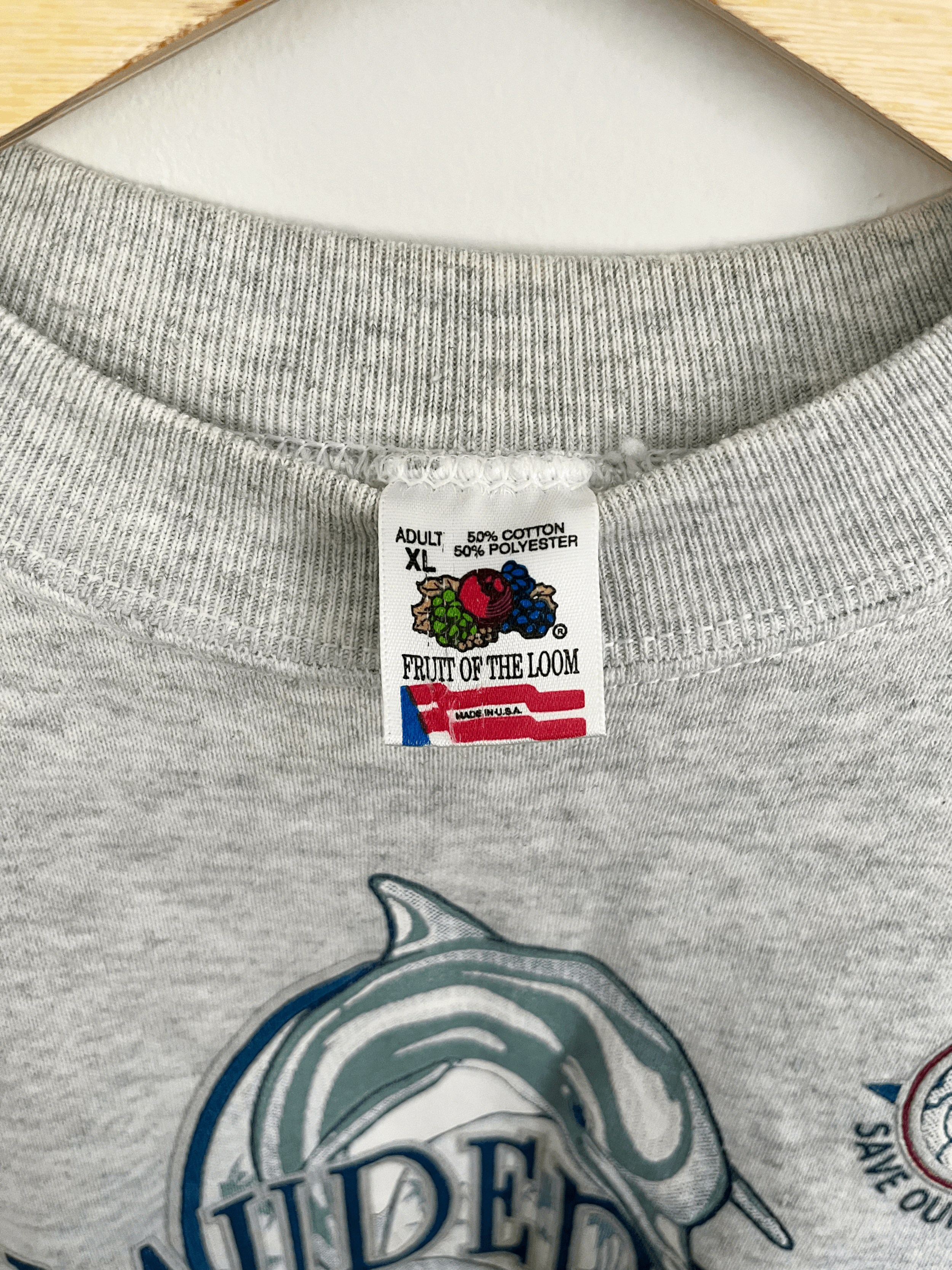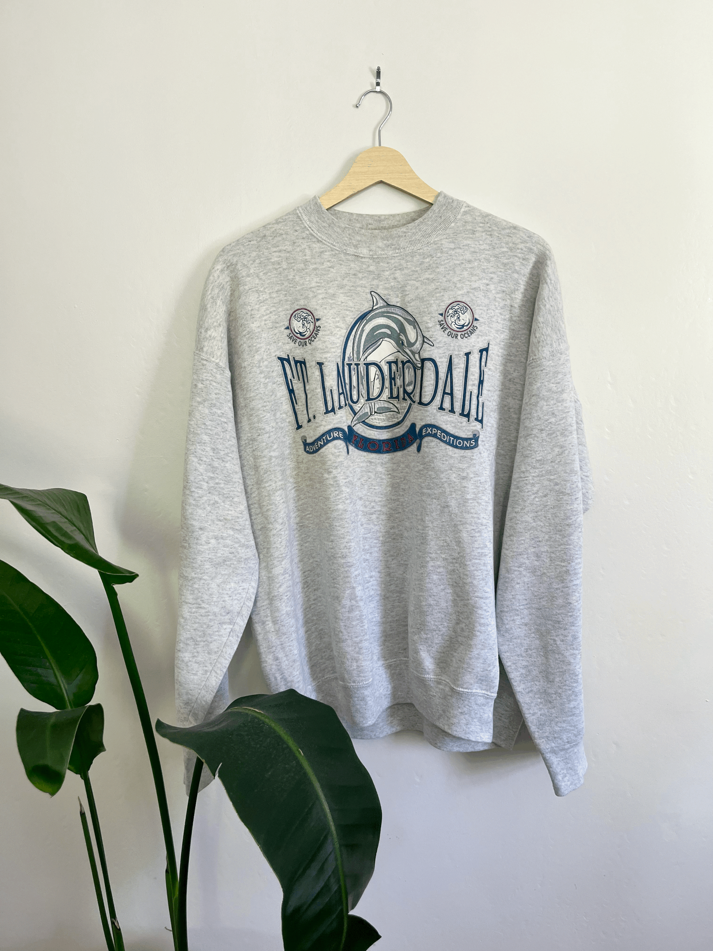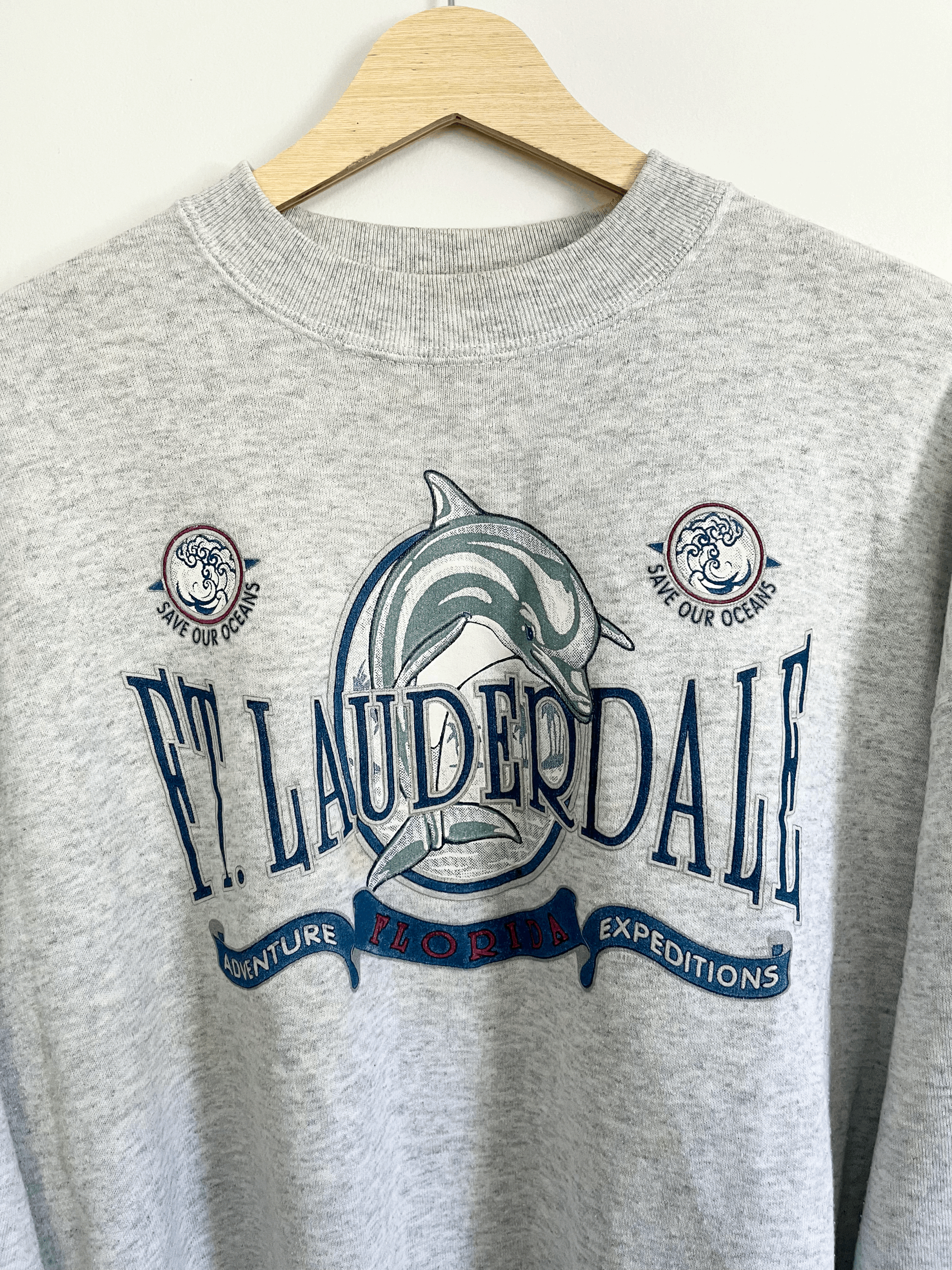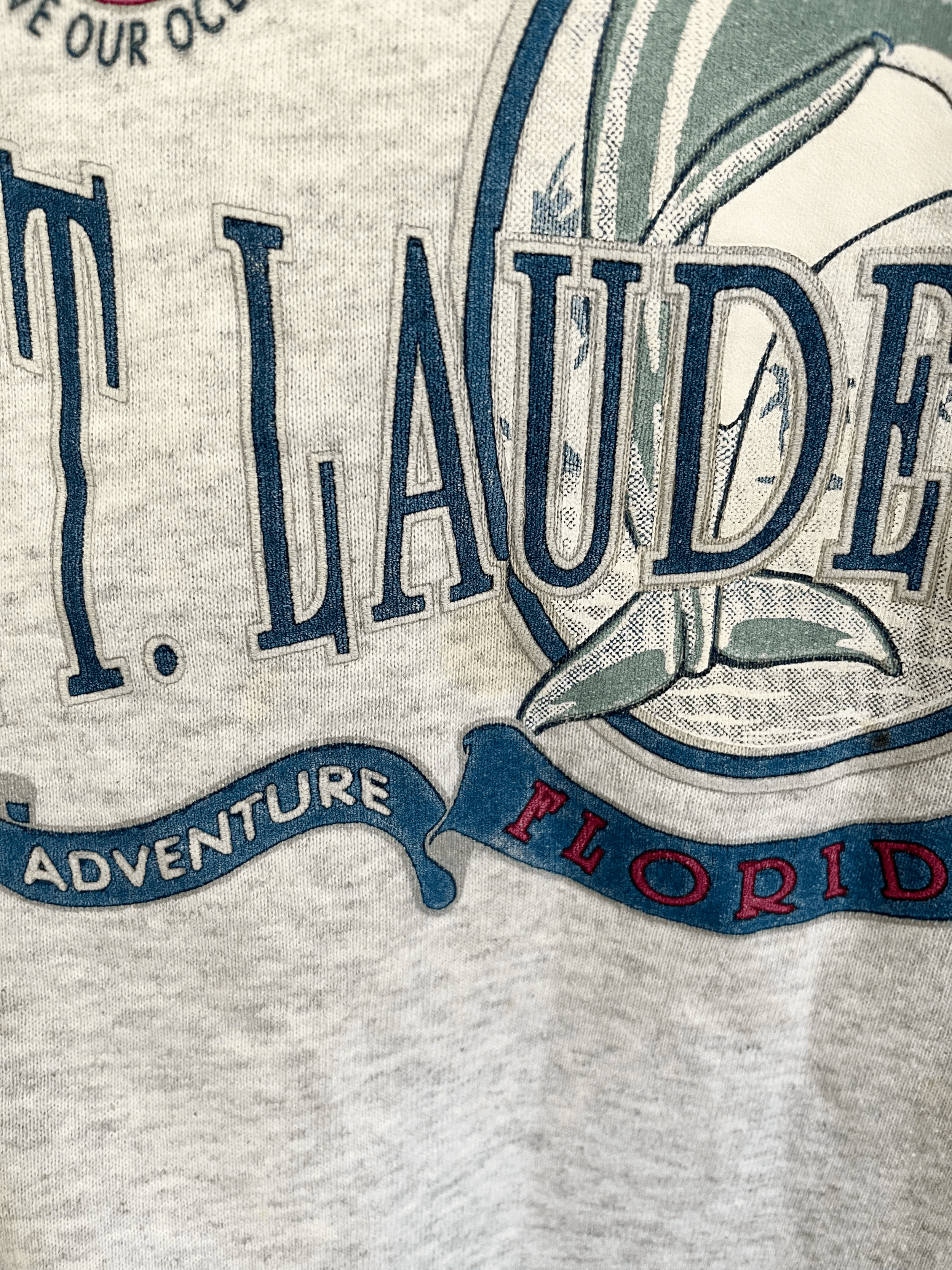 Vintage Operation Desert Storm Army crew sweatshirt in cream. Features a blue, red, yellow, and black graphic with an eagle and crest emblem. Stains on the front and sleeve. This piece is 50% cotton and 50% polyester. Fruit of the Loom brand and made in the USA.