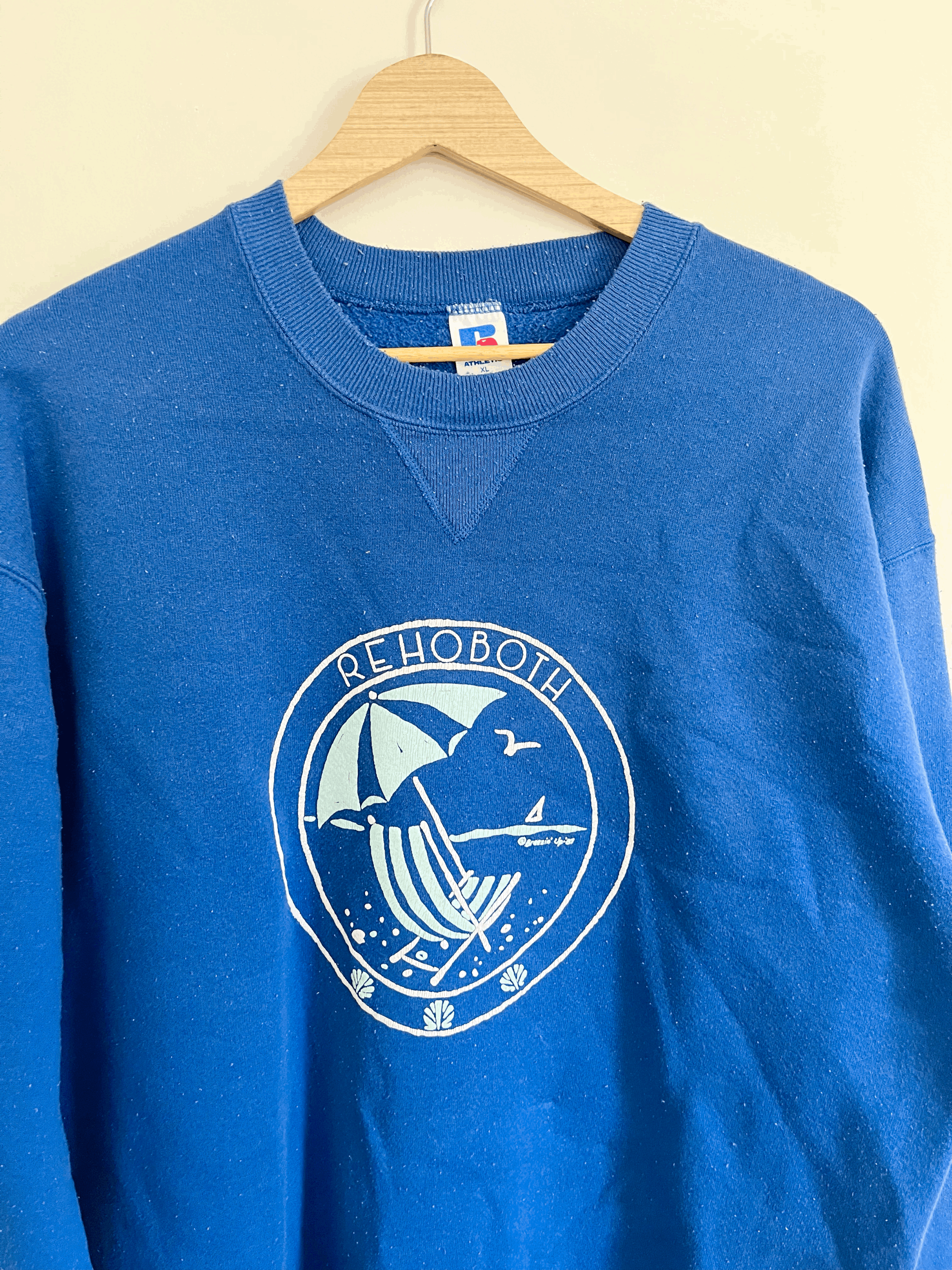 Vintage maroon red Tournament of Roses Pasadena crew sweatshirt with an embroidered rose on the chest. Soft, worn-in material with lots of holes at the waist and wrists and stains throughout. Made from 80% cotton and 20% polyester.