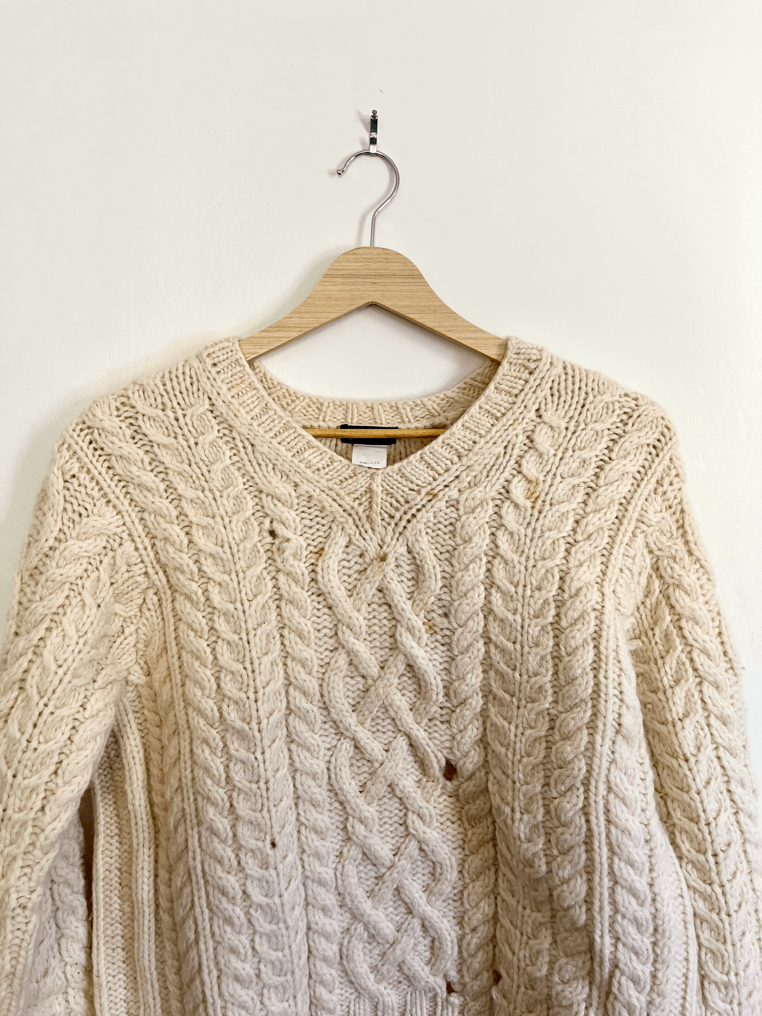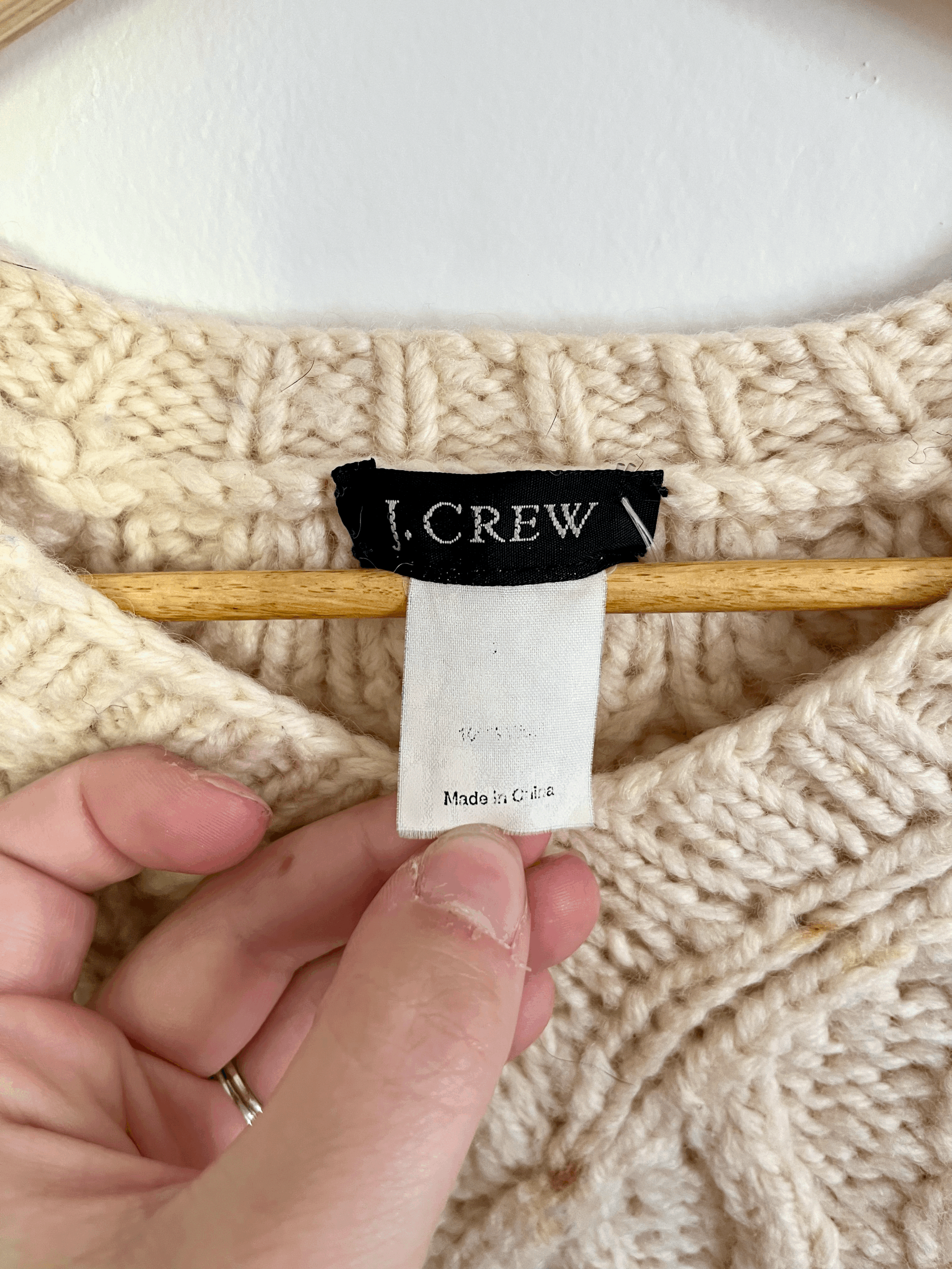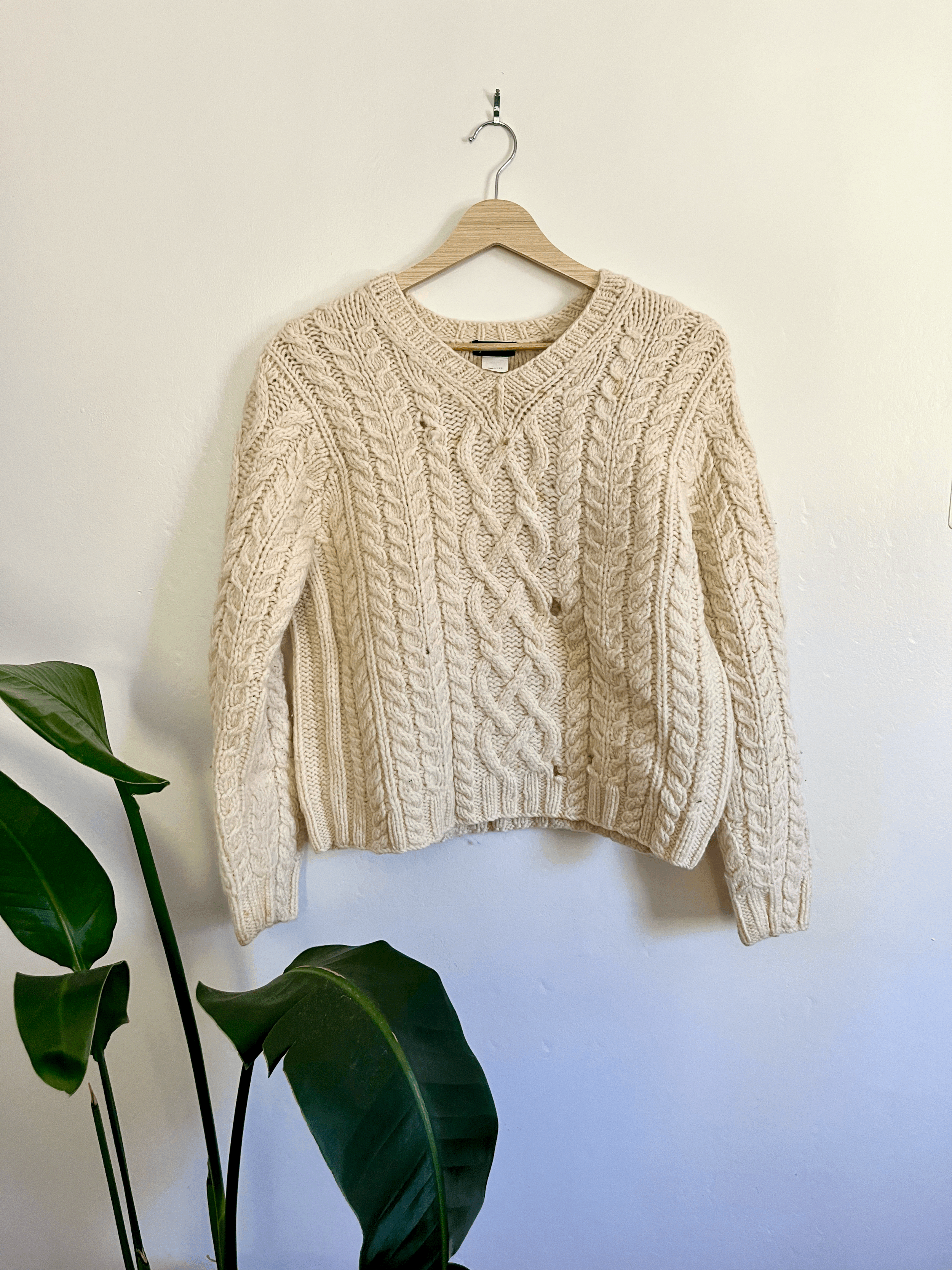 Deadstock vintage cream sweater with a crew neck and Calvin Klein embroidered logo on the front. Made from 100% cotton (“The Fabric of Our Lives” cotton). Calvin Klein Sport brand, made in the USA, with original tags. This piece is in good condition.