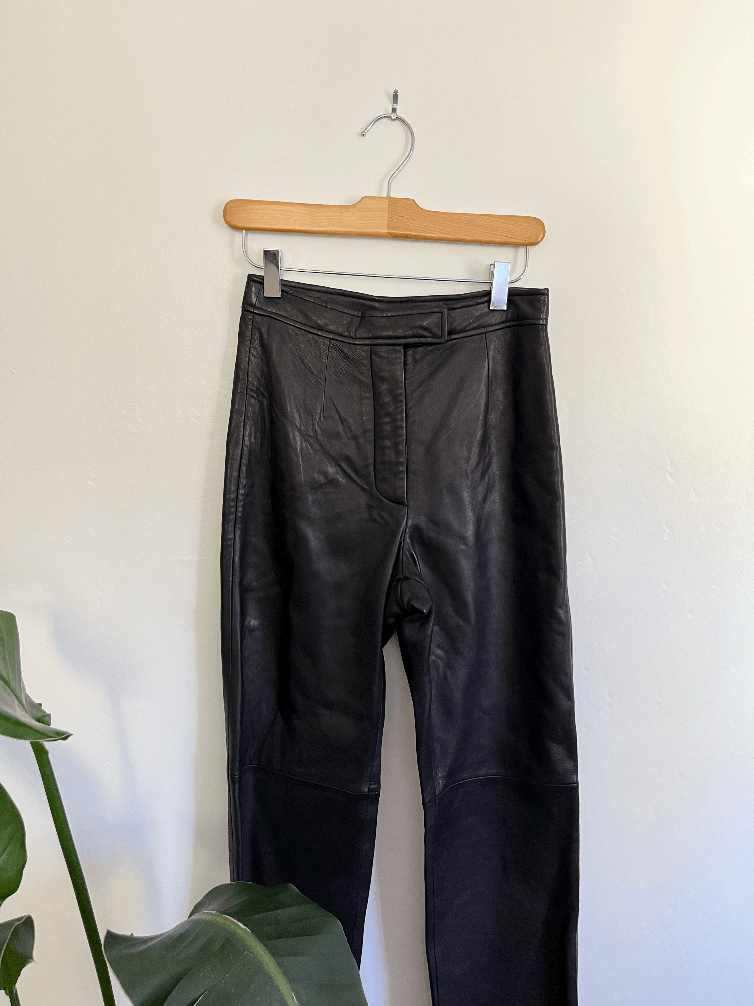 Vintage tan linen Banana Republic trouser pants with a zipper fly and button closure, complete with a matching tie belt. Features front and back pockets and a straight-leg silhouette. Made in India from 100% linen. In good condition with light, normal wear.