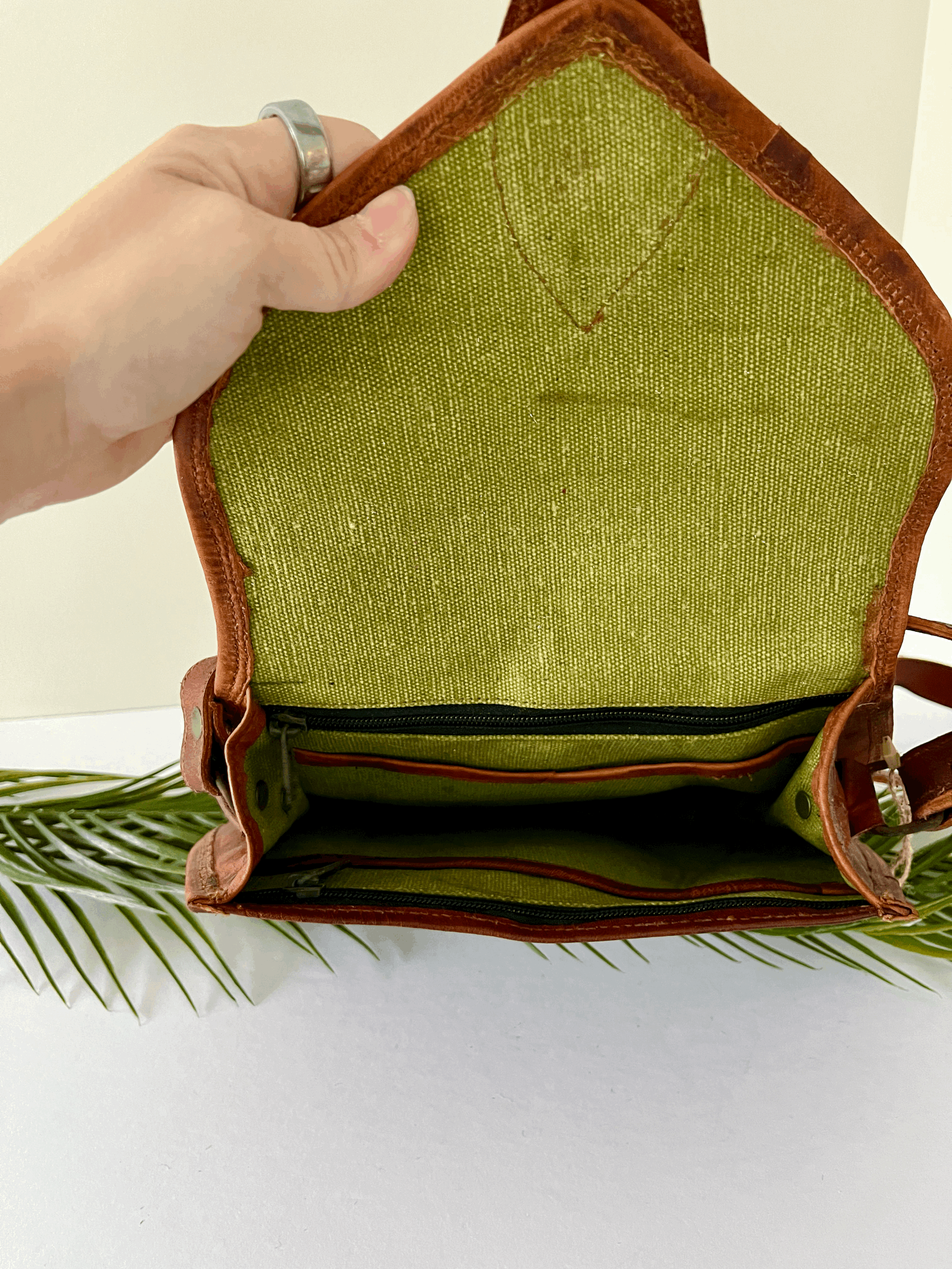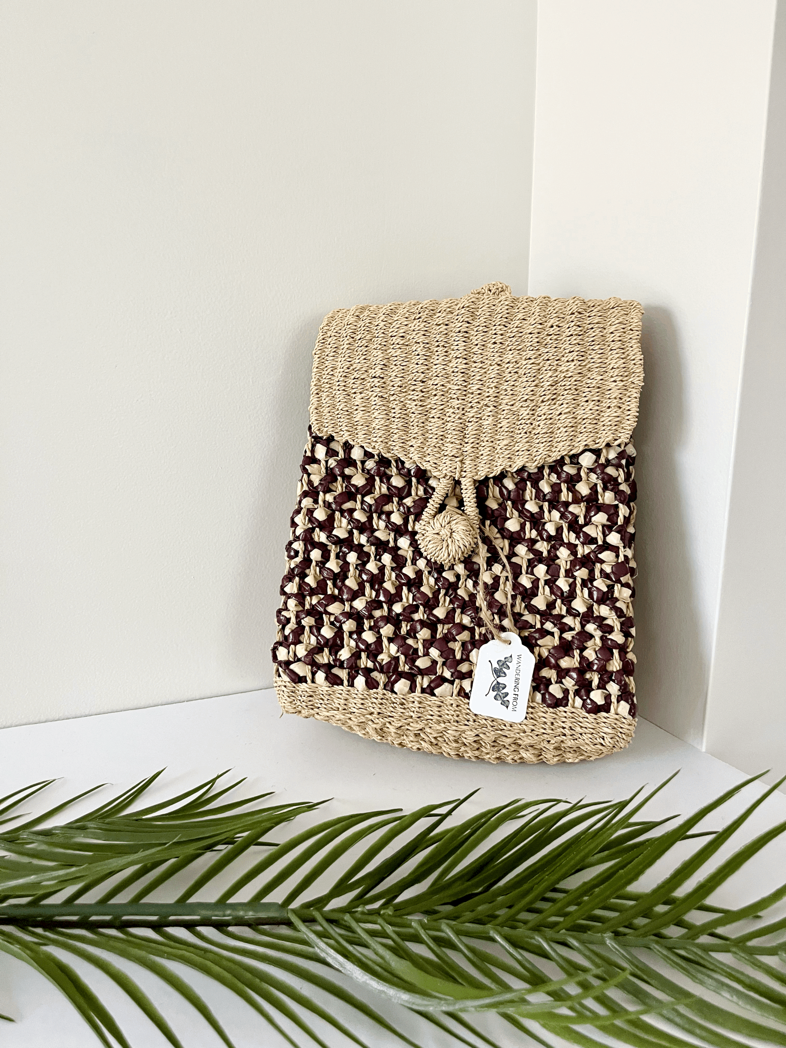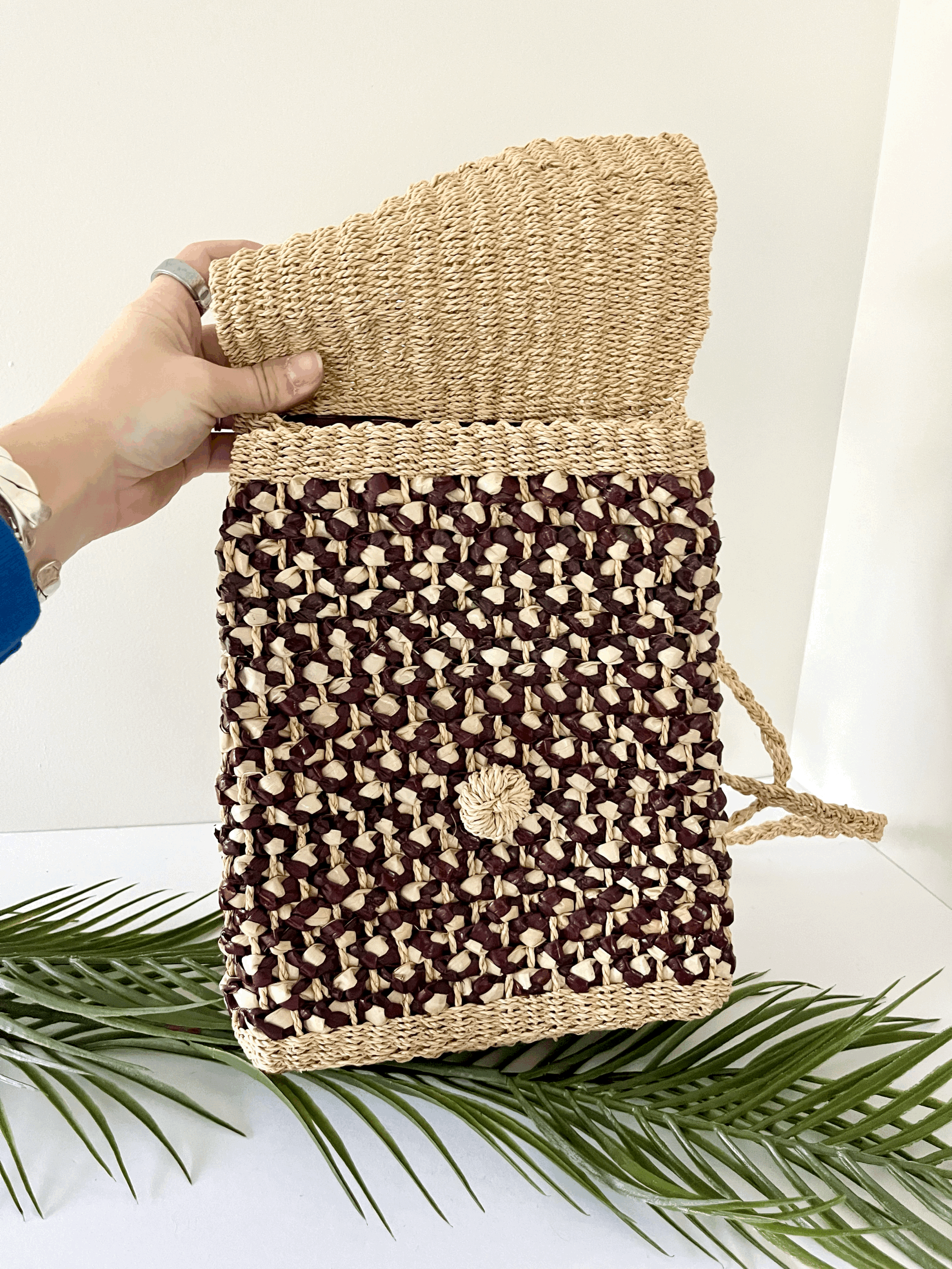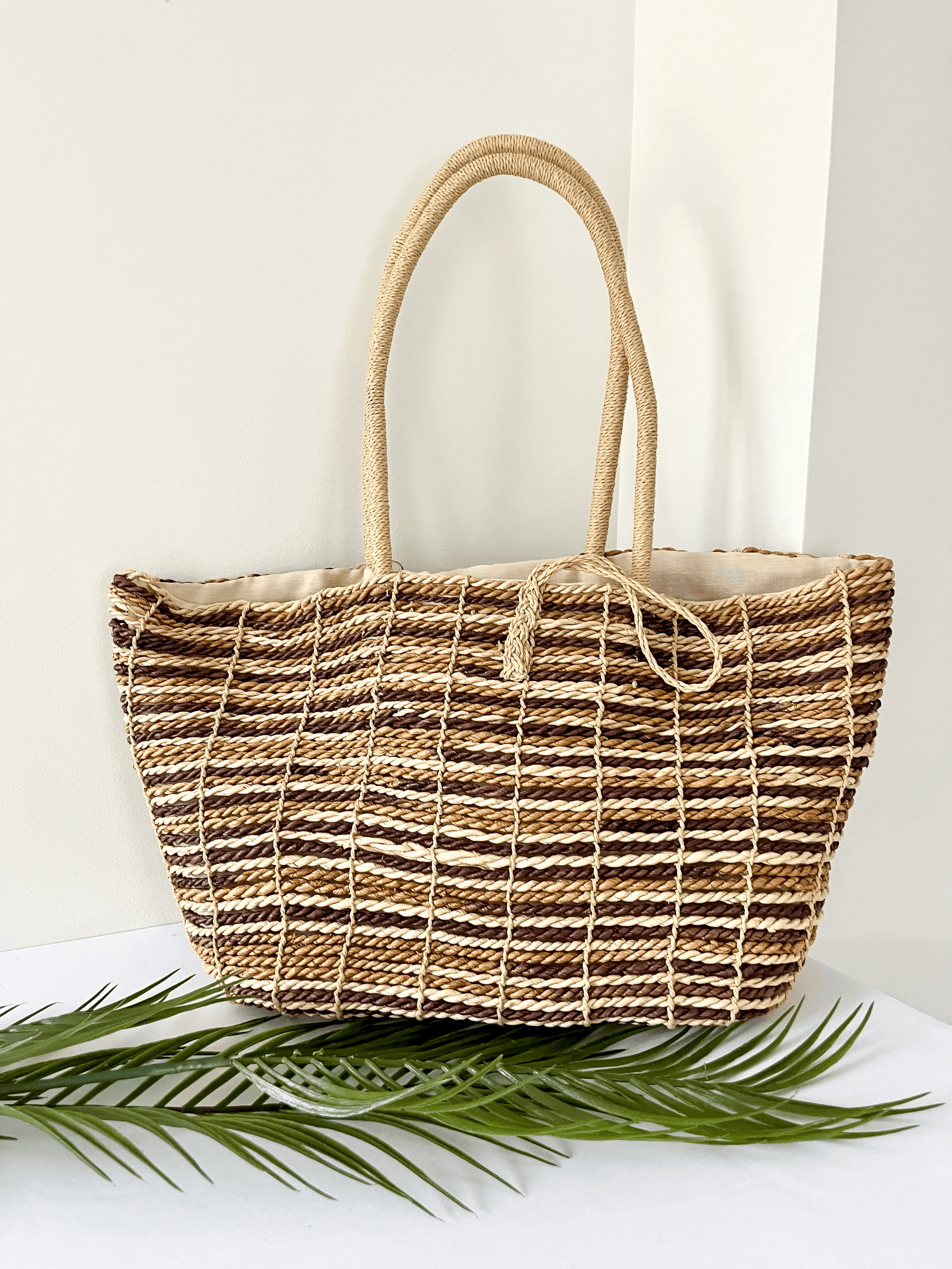 Striped Jute Purse with Leather Accents