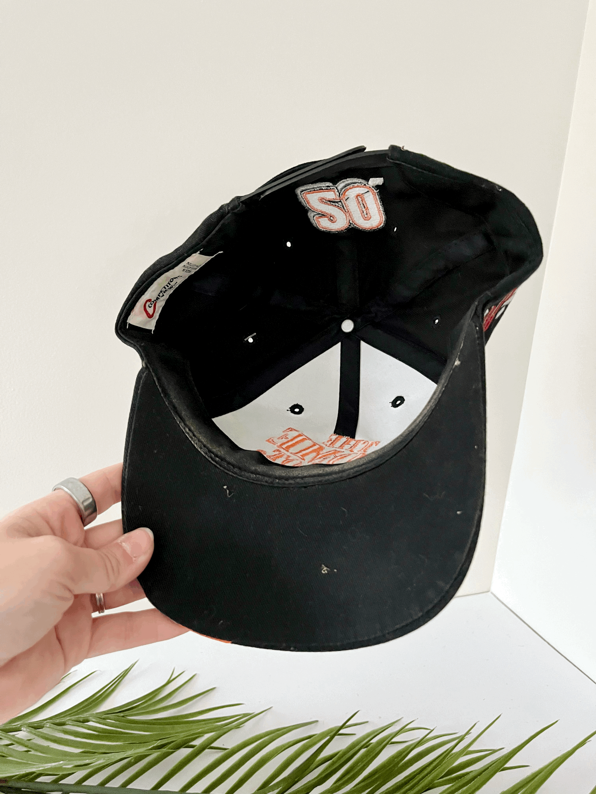 Texaco Ursa Premium TDX snapback hat. Features a navy hat with a red brim. This piece is in good condition.
