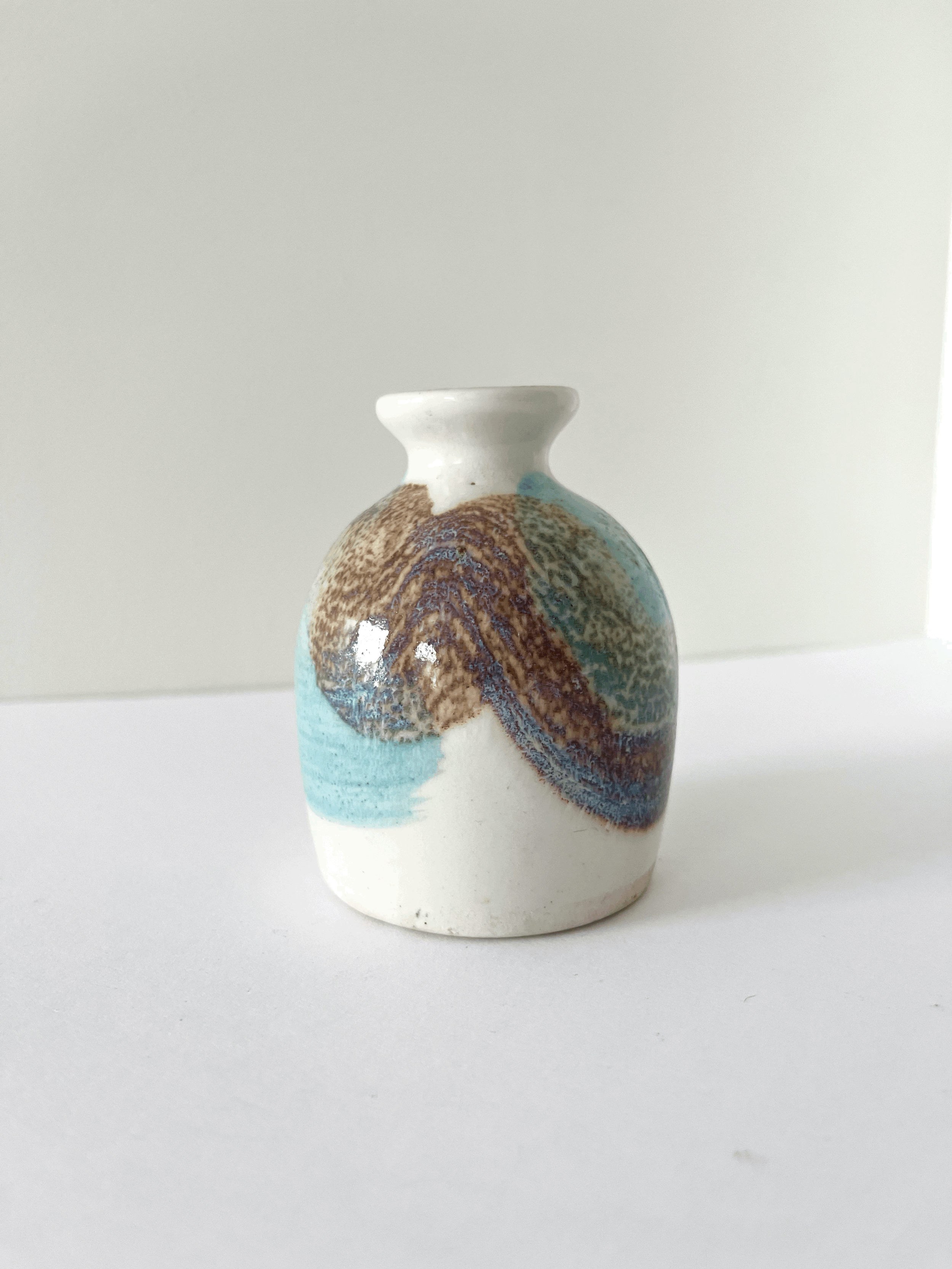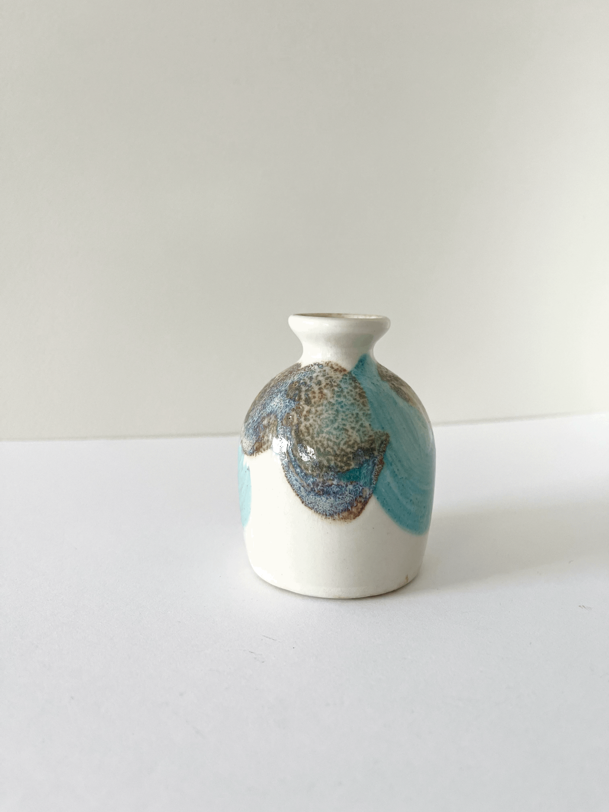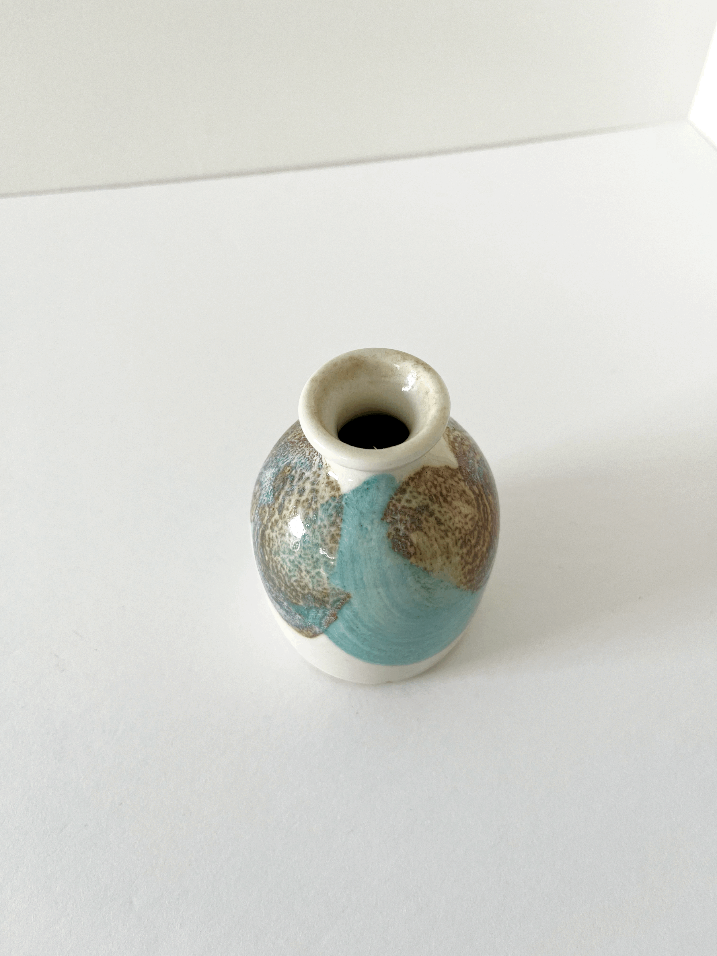 Vintage yellow alabaster marble mini vase, which could also be used as a candle holder. Hand-carved from solid marble in yellow and white hues, showing some signs of wear on the interior of the mouth. This piece is in good vintage condition.