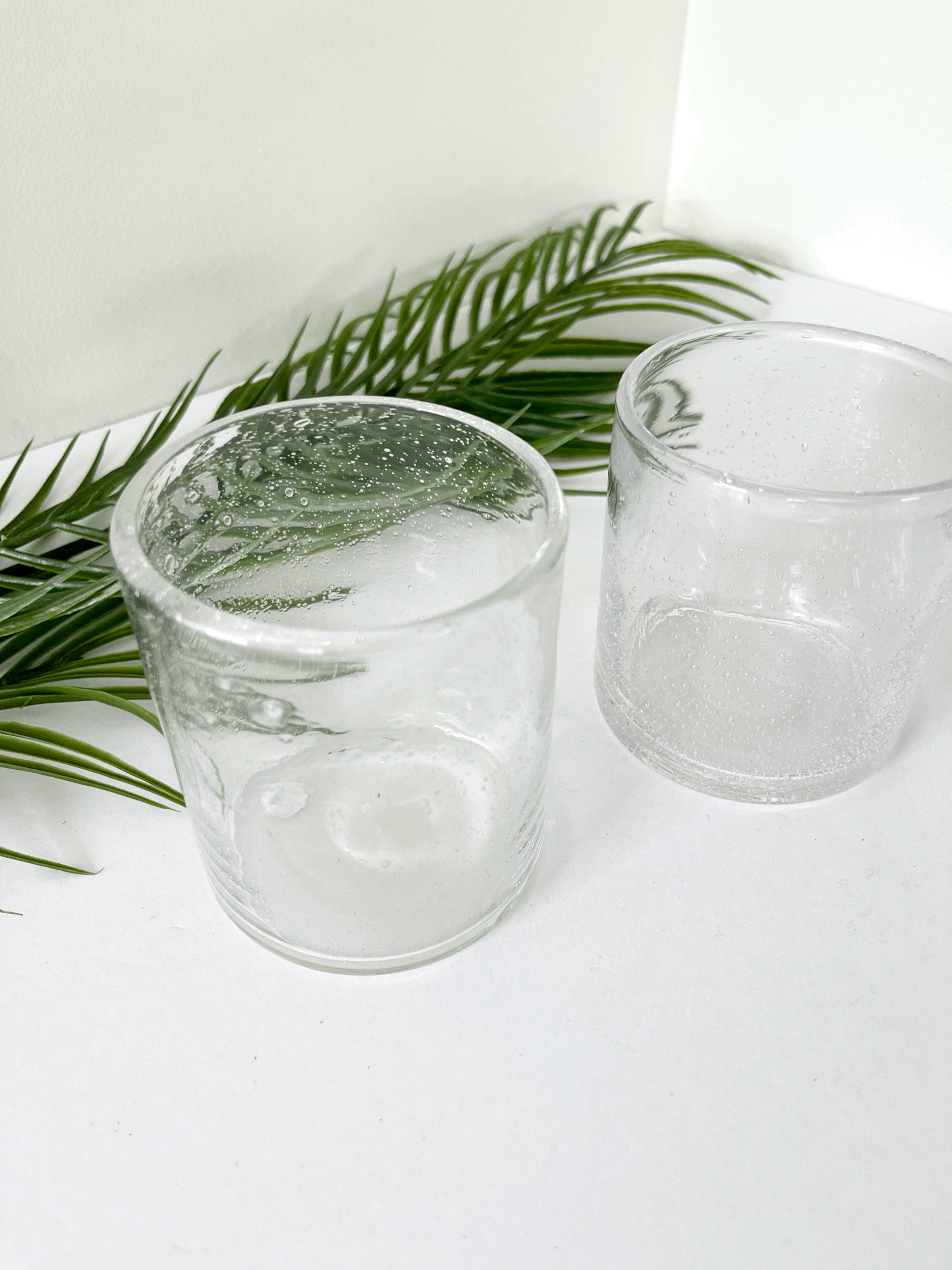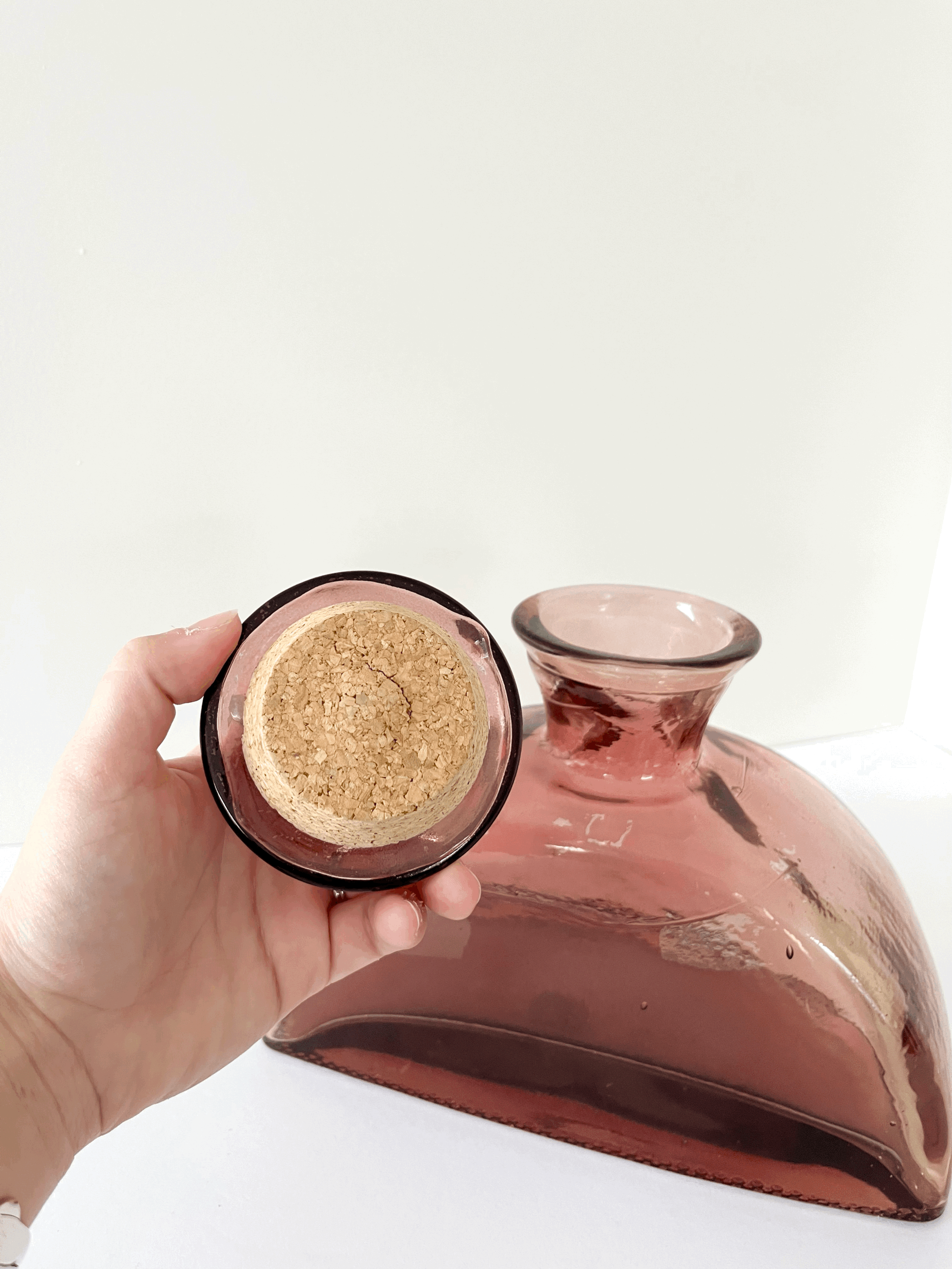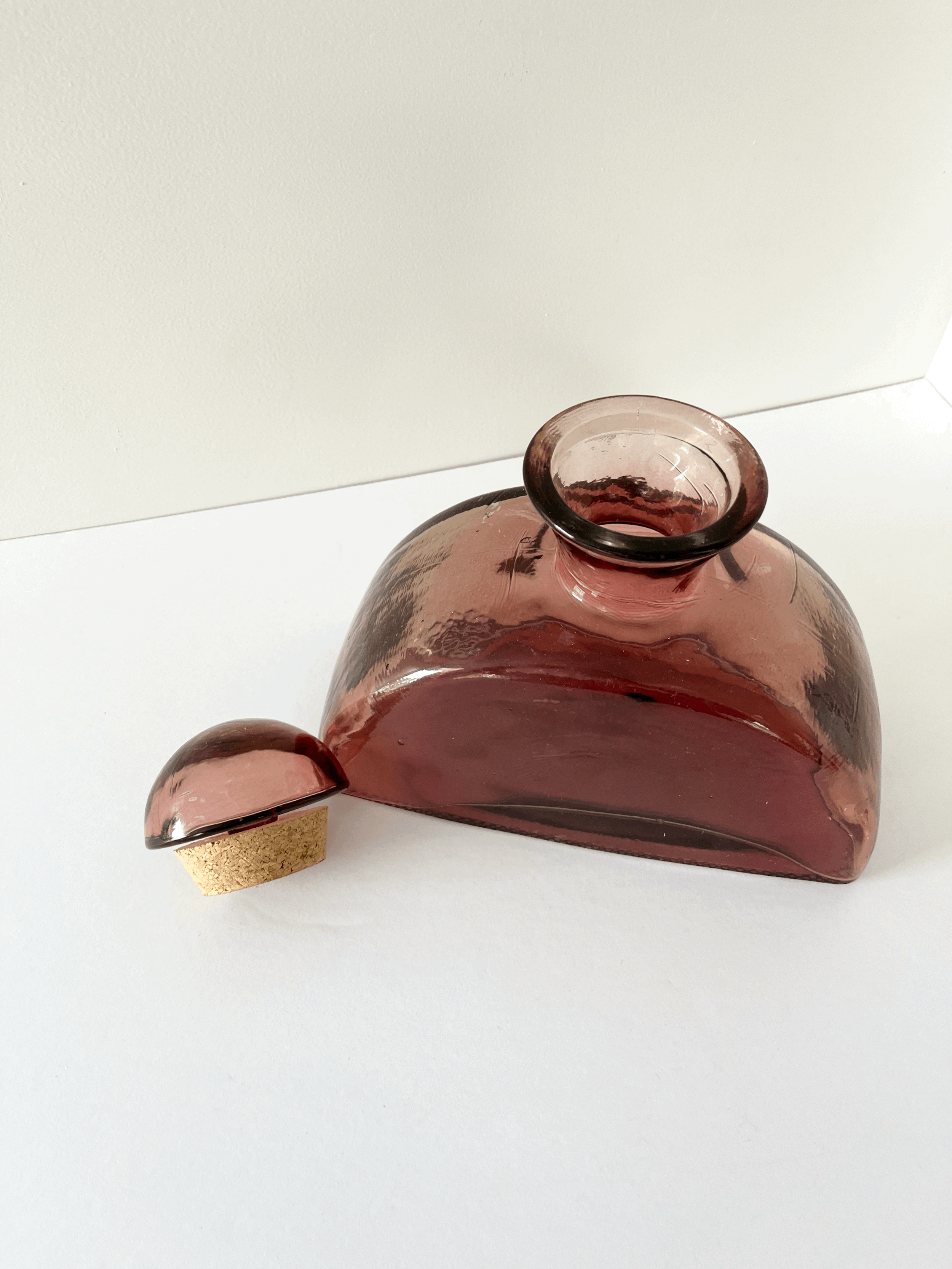 Antique clear rectangular decanter. Features a classic design with a cork that is coming apart. Federal law forbids the sale or reuse of this bottle—this marking was required on liquor bottles from 1935 to 1964 to prevent illegal refilling after Prohibition. This piece is in vintage condition and intended for decorative use only.