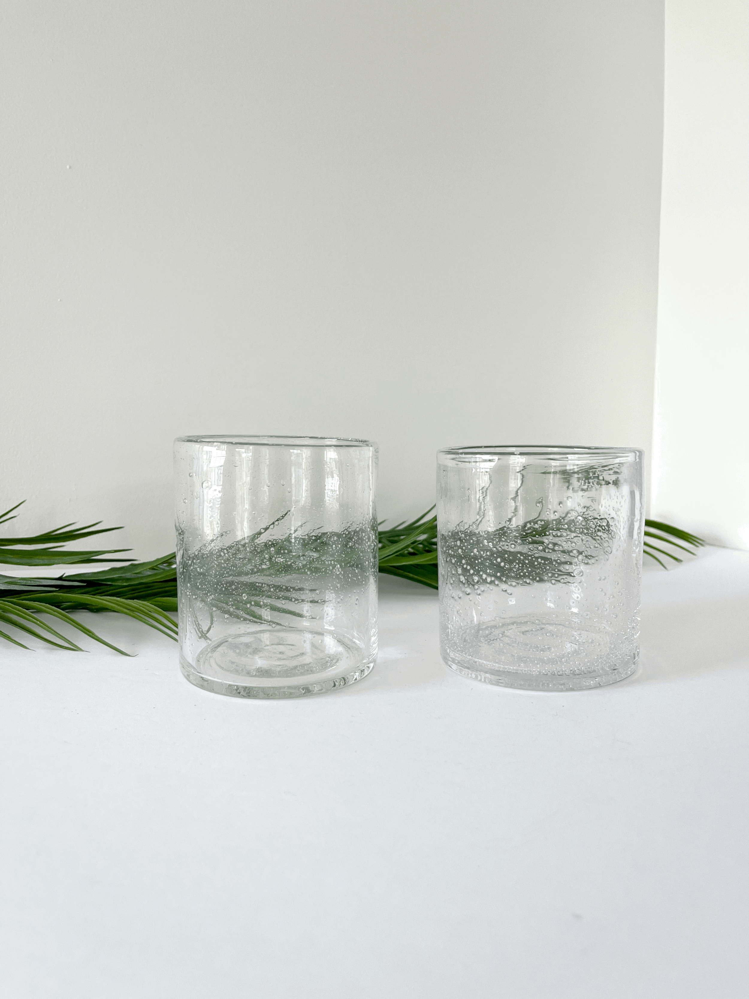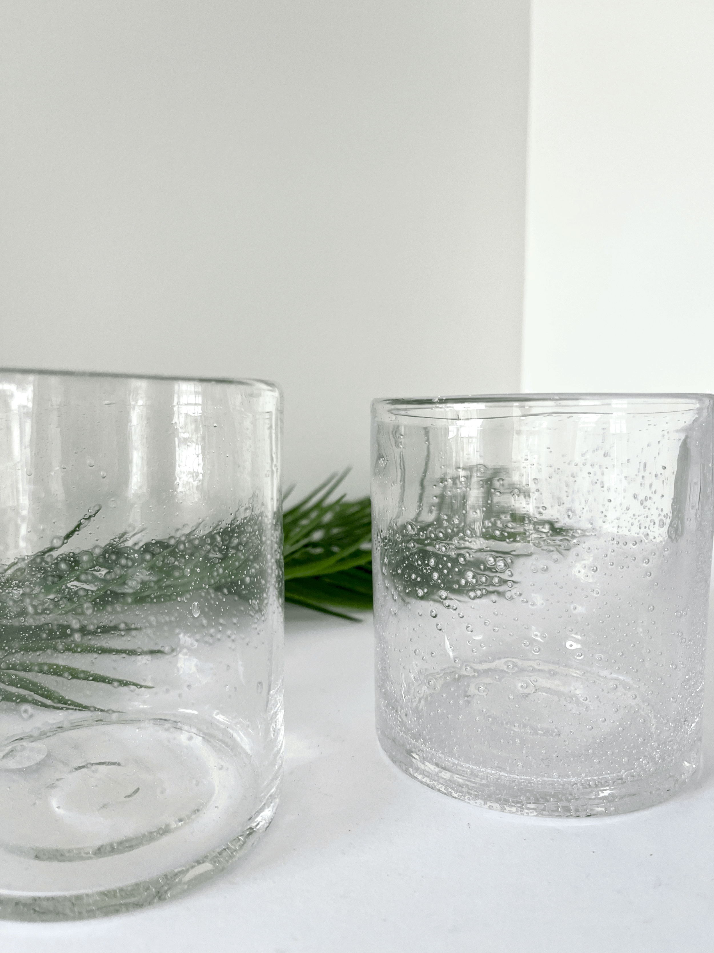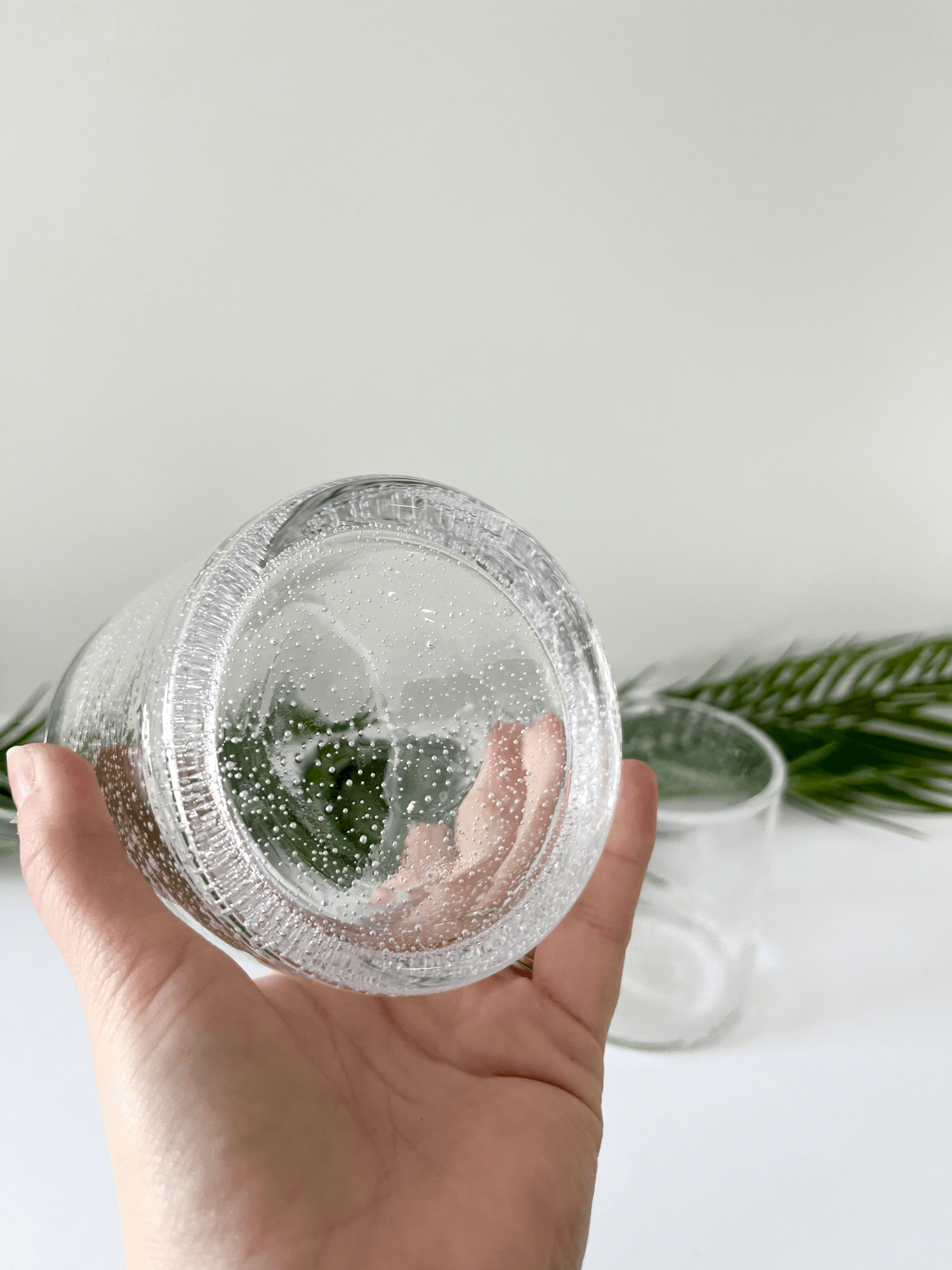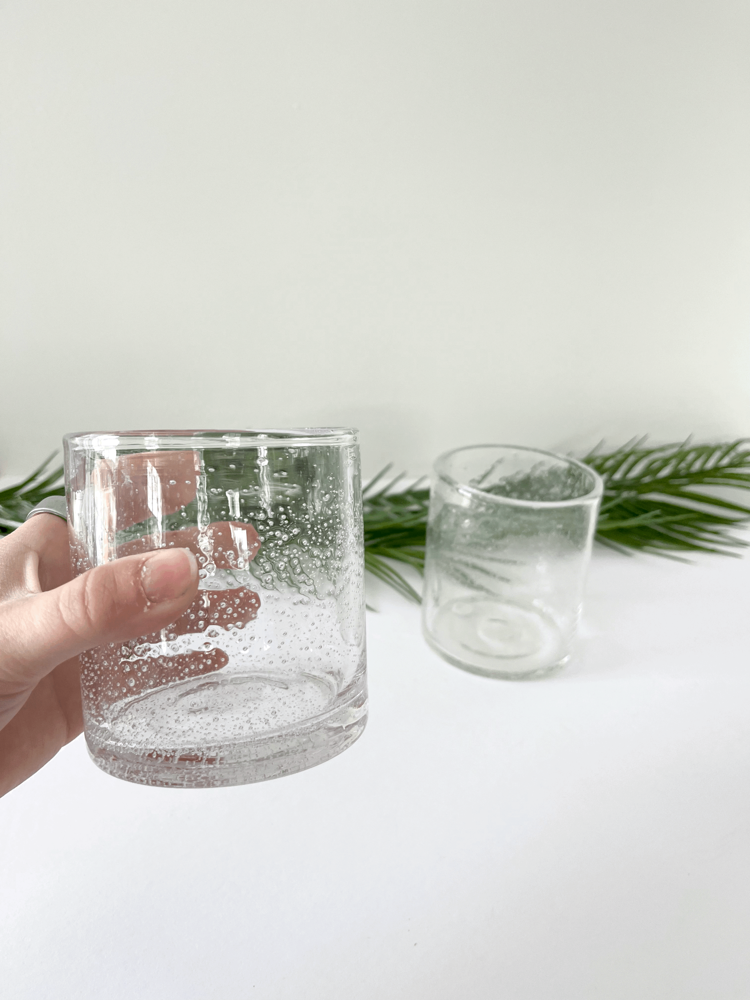Antique clear rectangular decanter. Features a classic design with a cork that is coming apart. Federal law forbids the sale or reuse of this bottle—this marking was required on liquor bottles from 1935 to 1964 to prevent illegal refilling after Prohibition. This piece is in vintage condition and intended for decorative use only.