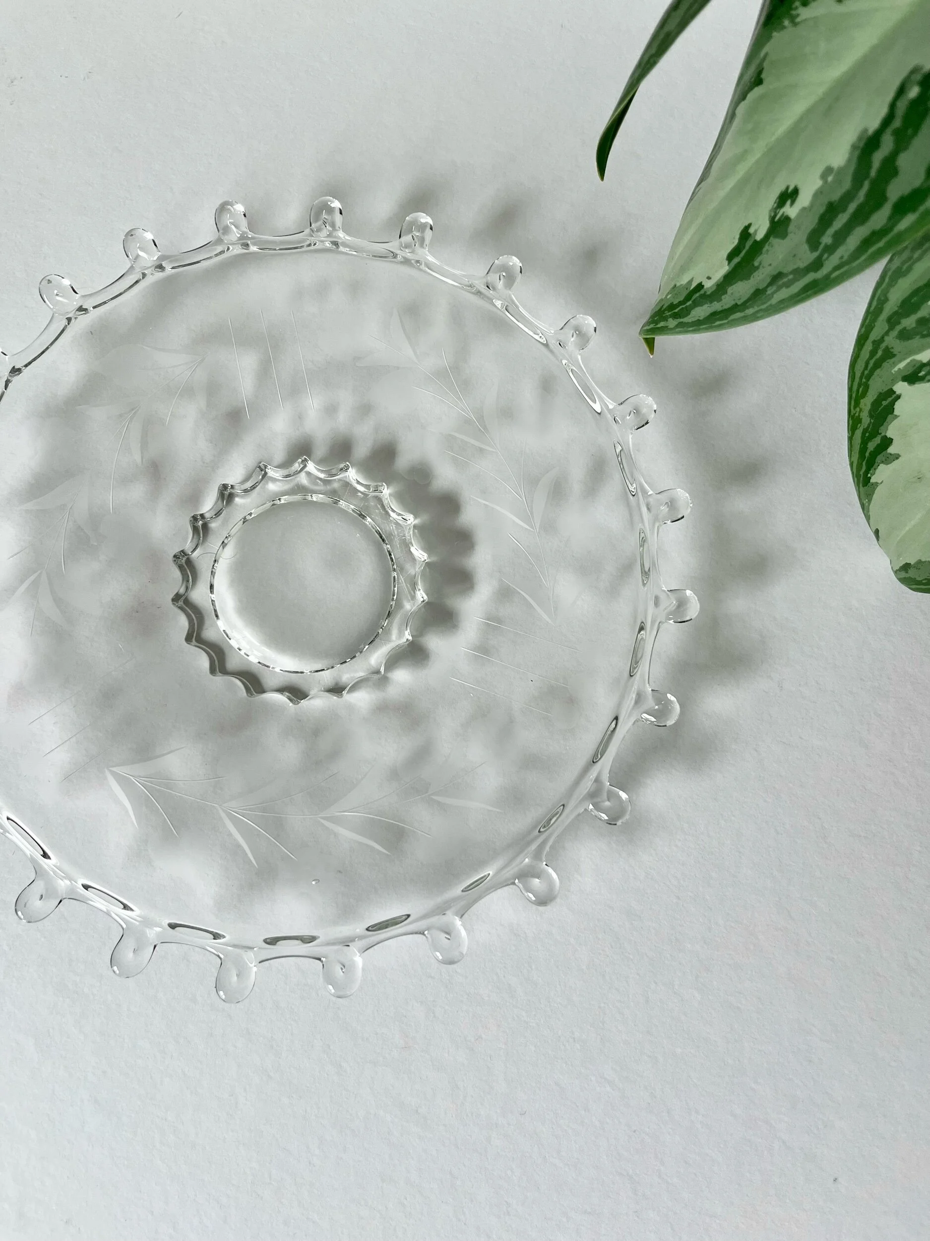 Vintage recycled glass plate in stunning aqua tones, rich with texture and character. Its organic shape features a small indentation along the edge, part of its handmade charm. No chips or cracks. A beautiful, one-of-a-kind piece perfect for display or everyday use.