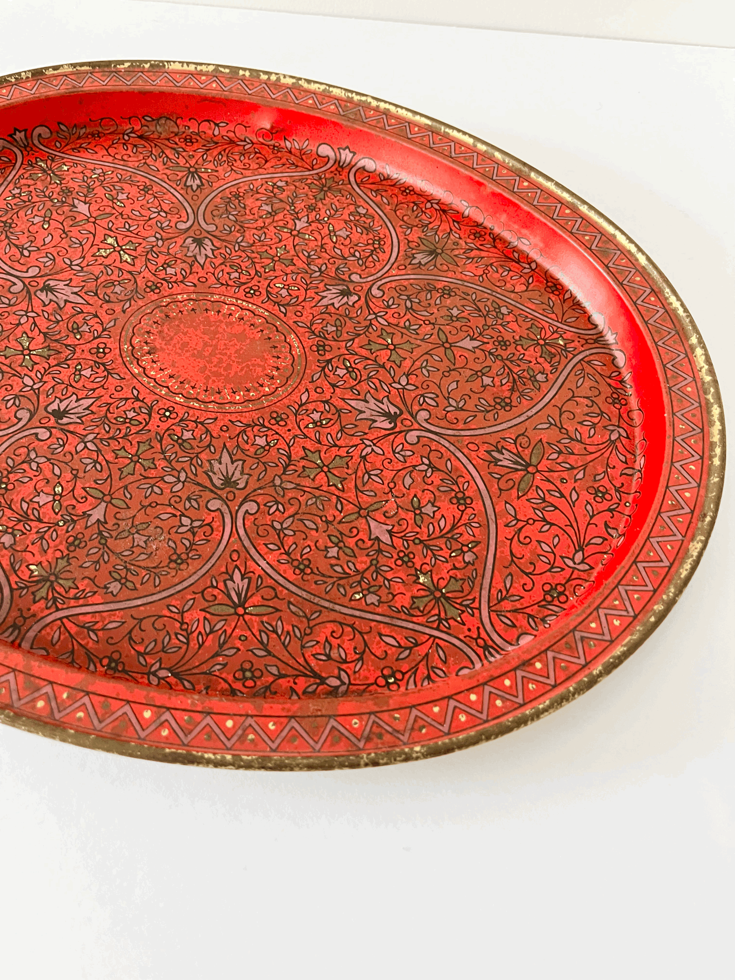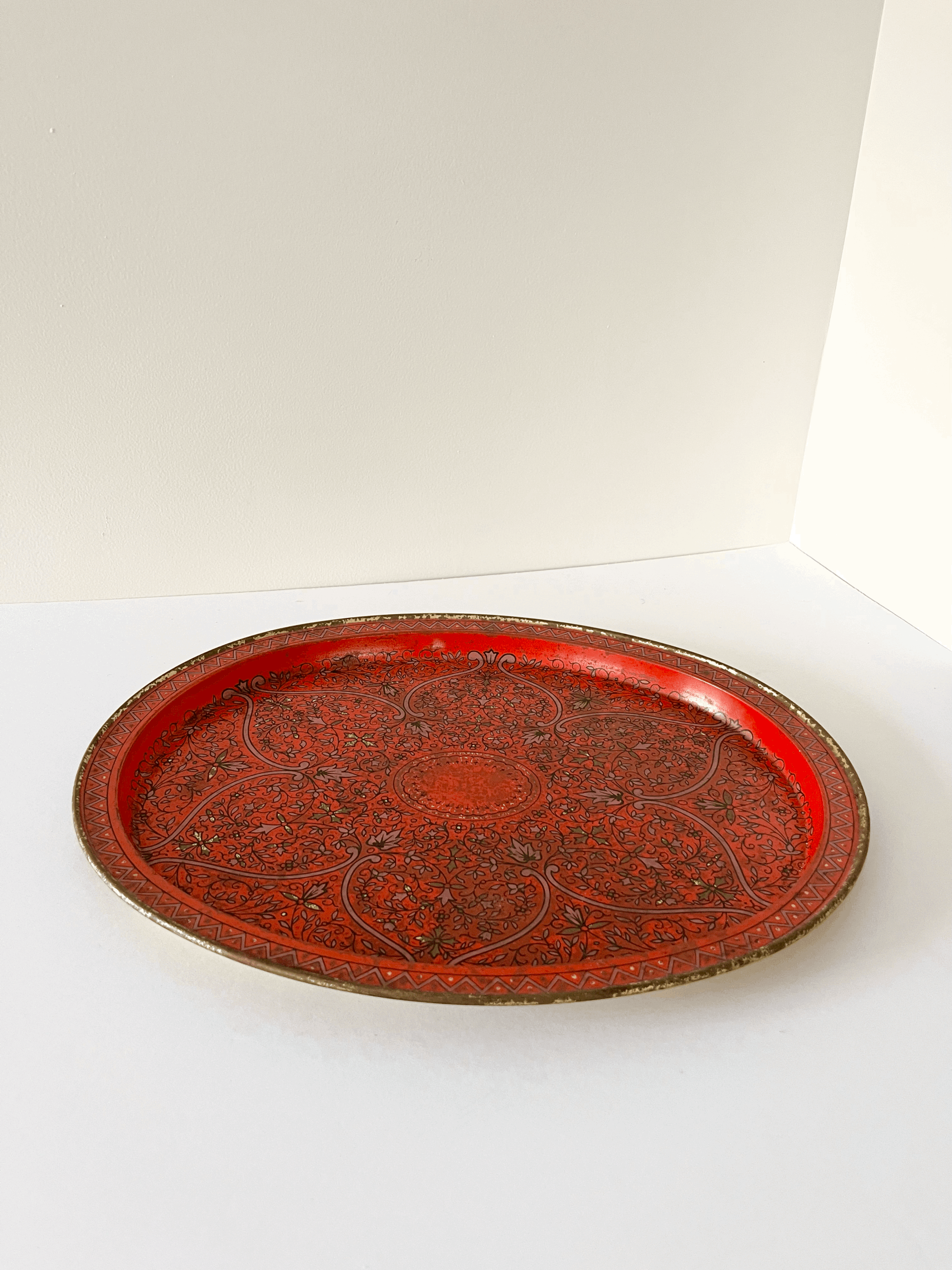 Antique Chinese cloisonné mini plate in green red with white, red, blue, and yellow floral designs. Shows chipping throughout, consistent with age.